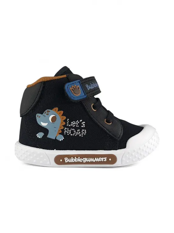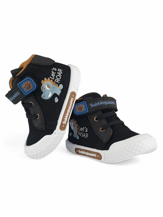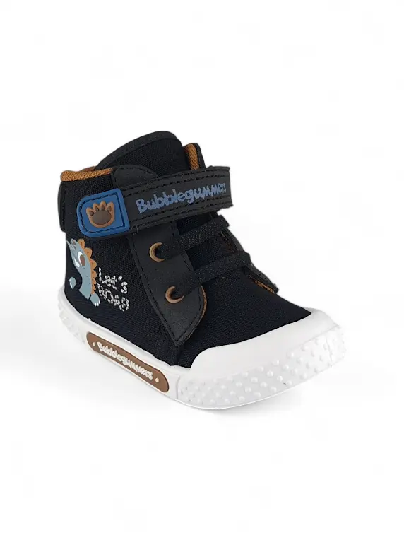 Botin Niño Bebe Dinosaurio Negro Bubblegummers. Descubre el estilo y la comodidad que los pequeños aventureros merecen con los botines de banda elástica y Velcro de Bubblegummers. En un elegante color azul oscuro, estos botines están diseñados no solo para atraer las miradas, sino también para ofrecer un ajuste perfecto y seguro. La banda elástica proporciona facilidad al calzarse, mientras que el cierre de Velcro garantiza que se mantengan firmes durante cada carrera y salto. Su suela antideslizante permite a los niños explorar con confianza, convirtiendo cada paso en una nueva aventura. ¡Ideal para acompañar a los más pequeños en su camino hacia la diversión!