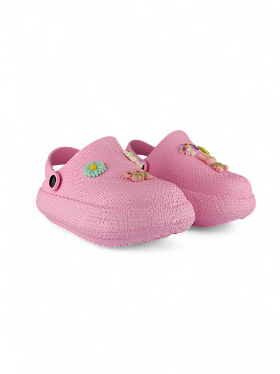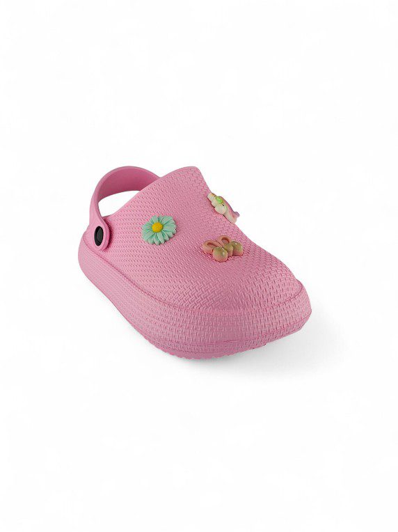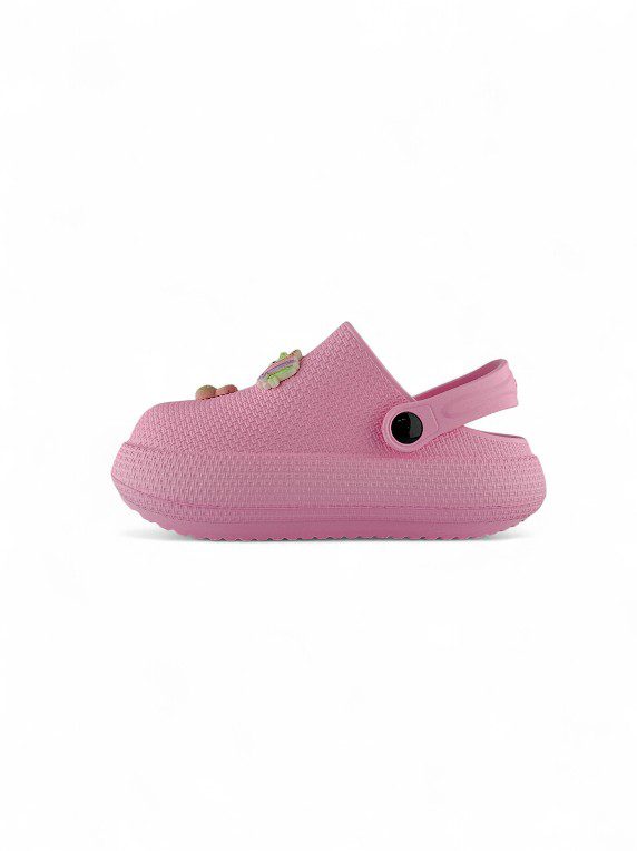 - Capellada en EVA color rosado con apliques acordes al diseño en la capellada del sueco, brindando un estilo único y versátil.