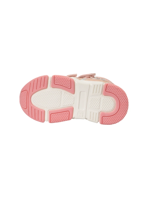 - Suela en material sintético color blanco con secciones rosadas antideslizantes para mayor estabilidad.