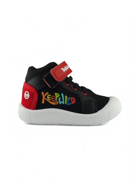 Botín Spedy en Velcro y Banda Elástica para Niño en color Negro con Rojo marca Bubblegummers
