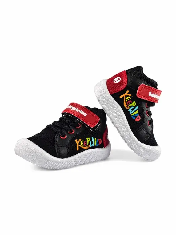Botín Niño Spedy Negro Rojo Ajuste Velcro Bubblegummers. Diseñado para los pequeños aventureros, el botín Spedy de Bubblegummers ofrece la combinación perfecta de confort y estilo. Su ajuste con velcro y banda elástica permite mayor practicidad al calzarlo, mientras que su diseño moderno en negro y rojo brinda un look deportivo y dinámico. Fabricado con materiales resistentes y una suela antideslizante, es ideal para jugar sin límites con total seguridad.