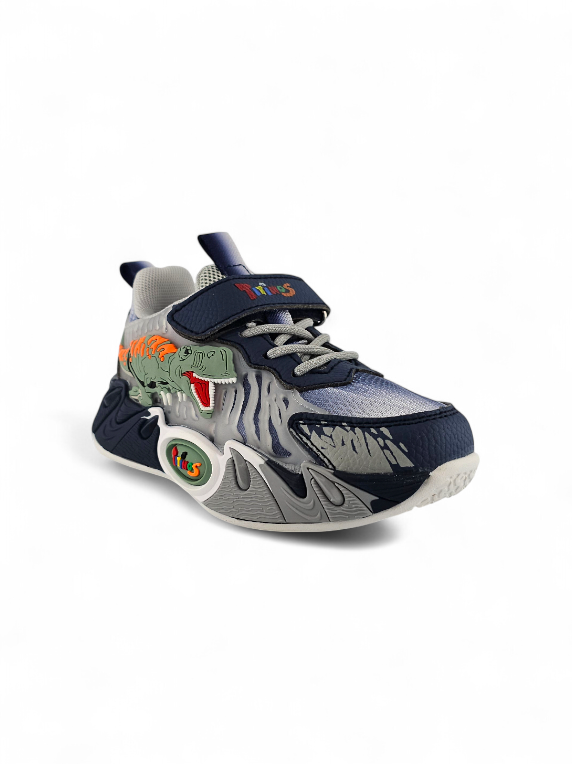 Tenis Dinosaurio Gris para Niño en color Gris y Azul Marino marca Titinos