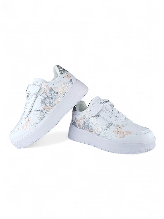 Tenis Casual Mariposas para niñas en color Blanco con plateado marca Titinos