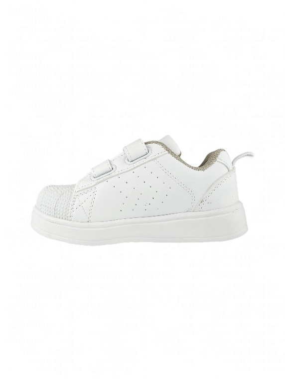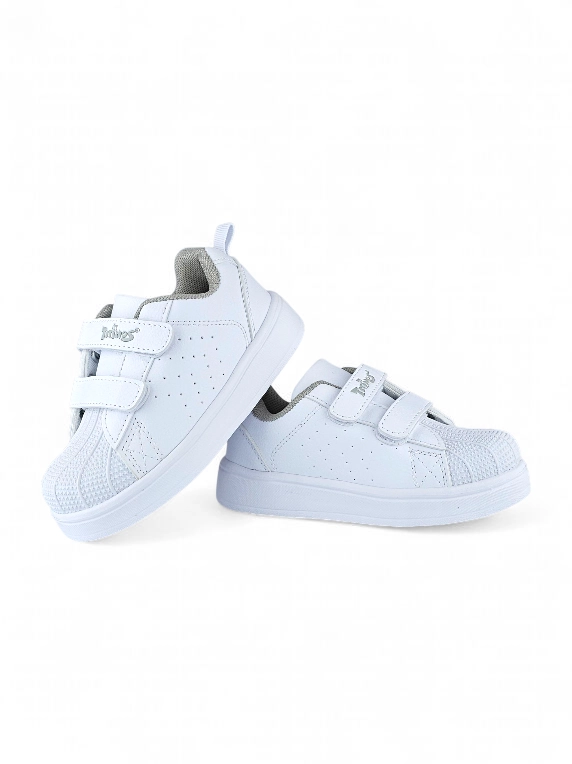 Tenis Velcro colegial color Blanco marca Titinos. 👟 Estos tenis colegiales combinan resistencia y comodidad en un diseño práctico y versátil. Su puntera en caucho con relieve asegura mayor protección y durabilidad, mientras que el cierre en velcro facilita un ajuste seguro y rápido, ideal para la rutina escolar. Ligeros, frescos y confiables, son el aliado perfecto para que los niños vivan cada jornada con estilo y confianza.